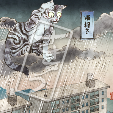 天高くに住む巨大な怪猫。顔を洗うとたちどころに黒雲が広がり雨が降ることから、雨神と崇められる一方で、豪雨や嵐を呼ぶ怪物として恐れられた。