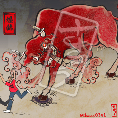 強い力で疫病を抑えるとして拝まれている牛の姿をした荒ぶる神獣。その姿を見た者の病や、病に対する恐れを祓う。ただし、病だけでなく、血、嘘、腫れ上がった皮膚、とにかく赤いものを見ると見境なく蹄と角を振るう。