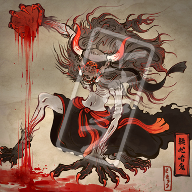 猜疑心に苛まれた人が悪鬼に成り果てた姿。目には暗闇しか映っていない。寧ろ見ようとすらしない。疑い、勘繰り、邪推に邪推を重ね、その肚の内を知りたいが為に、音と匂いを頼りに生きたままの人間の腹を掻っ捌いた。好みは腸(はらわた)と心の臓。