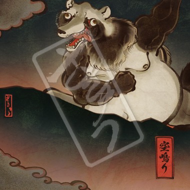 草木も眠る夜更けに現れる、山のように巨大なムキムキ狸。夜中にどこからともなく「ドン、ドン、ドン」と太鼓の音が響いたら、それは深夜テンションでハイになってる空鳴りの腹鼓の音である。力強く響き渡るその音は、近隣の住民を寝不足に陥れる。