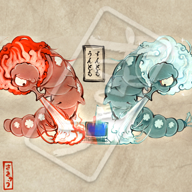 パソコンに悪さをする怪虫。「うんとも」は凄まじい熱気を、「すんとも」は冷気を吐き出し、パソコンを固めてしまう。