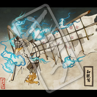 ボロボロになった障子が化けたもの。怨念の炎を纏いながら空を飛ぶ。これにすり抜けられた人は別の世界へ飛ばされてしまうという恐ろしい化け物だが、実は猫にまつわるあらゆる物を忌避する。毛一本でも服に付いてると和紙鷲に襲われずに済むという。文字通り、毛嫌い。