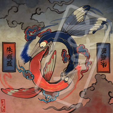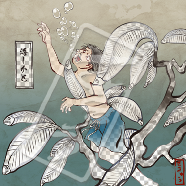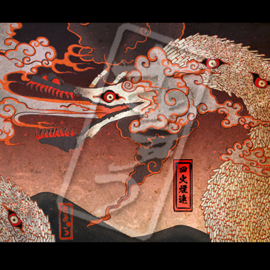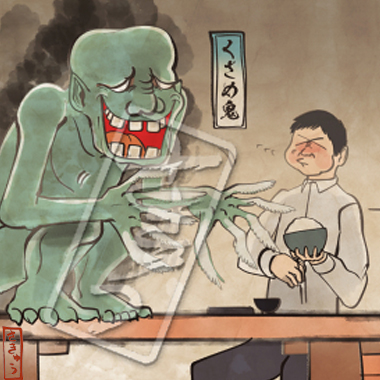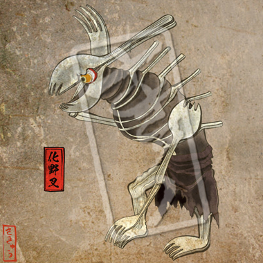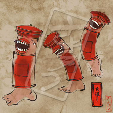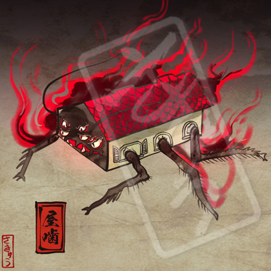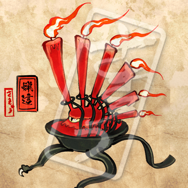 火のついた煙草が集まって生まれてしまった邪龍。その体は熱をまとい、吐き出す煙は毒を帯び、通ったあとは火事になる。山に捨てられた煙草は特に四火煙連に化けやすく、山火事を引き起こしあっという間に辺りを焼け野原にしてしまう。煙草のポイ捨て、ダメ、絶対。いつも血眼でニコチンに目がないため、その昔煙草をしこたま与えられ、ヤニクラを起こしている間に退治された伝説がある。