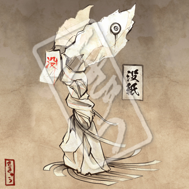 くしゃくしゃにされた紙が放置され、化けたもの。中には没ネタが書き込まれている。これに取り憑かれると、発想が全て没紙に奪われる。紙を捨てる時に直ちに焼却、棄却すれば化けない。