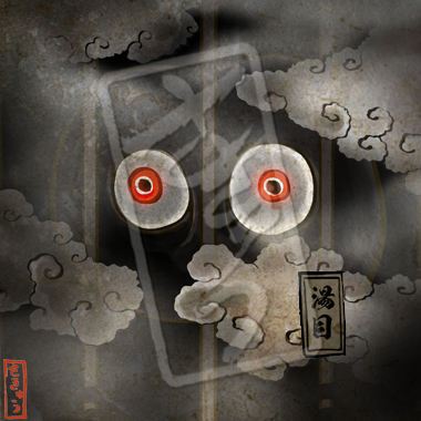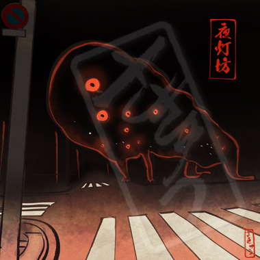 夜闇に紛れ這いずる妖怪。たくさんの目は街灯のように赤く、夜に遠くから見られている感覚がするのは大抵はこれのせいだが、非常に見分けがつきにくい。光に弱く、照らし返されると消える。