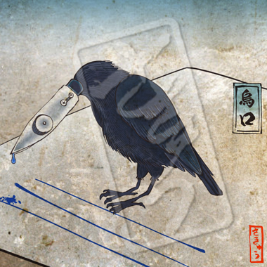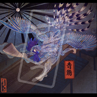 日本ではカラスの様な姿で描かれるが、中国ではアヒルのような姿で描かれる。