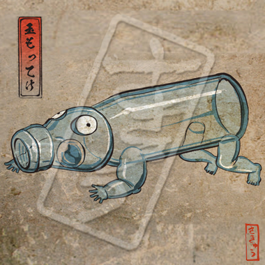 中のエー玉(「ビー」玉に非ず。)が取り出せず、子供に諦められてそのまま捨てられたラムネ瓶の妖怪。中の玉がつっかかって気持ち悪いため、人間に取り出させようと這って追いかけてくる。