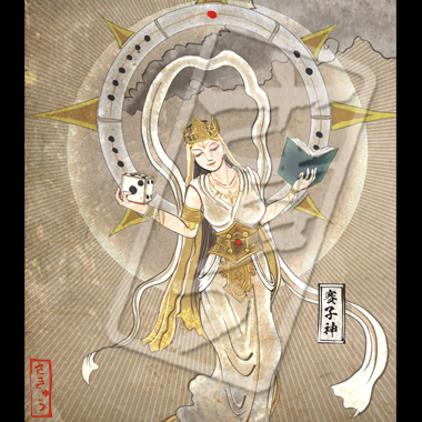 別名賽子(さいこ)様。サイコロの出目を操る女神。菩薩のような笑みを浮かべているが非常に気まぐれで、サイコロを扱う遊びでは賽子神に弄ばれた人が後を絶たない。近年でも信仰があつい神だが、信じるあまり邪神と呼ぶ人間も中にはいる。