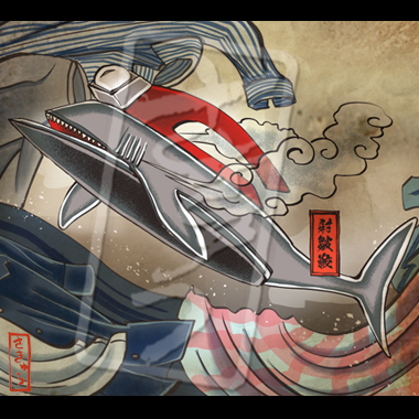 古くなったアイロンの妖怪。エラから蒸気を吹き出しながら衣の海を泳ぐ鉄の鮫になった。腹はとても熱く、これが泳いだ後の衣は焦げ付いたり、皺だらけになったりとにかく滅茶苦茶になる。