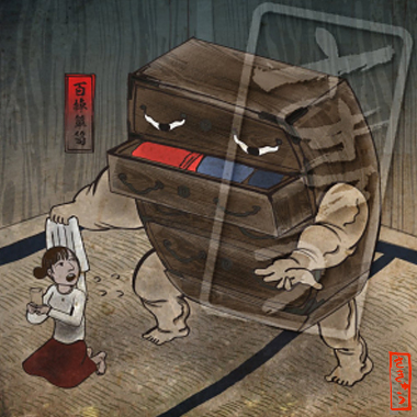 タンスの肥やしの服やら、へそくりや、タンスにゴ○を溜め込みすぎてとんでもなく肥えてしまったタンスの妖怪。更なるカロリー(タンス視点)を溜め込むべく、人間から金や衣類を自分にしまえと迫る。拒否すると百棹分あるかと紛う程の重い巨体で潰そうとしてくる。