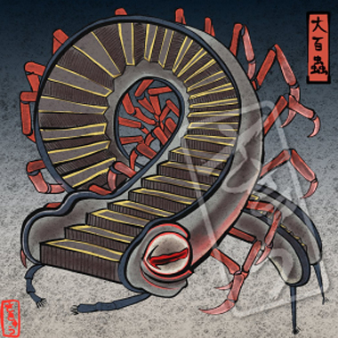 絶え間なく畝り続ける妖虫。エスカレータに足をかけるとき、何だか恐怖心に煽られ足が進まなくなる時がないだろうか。それは実はエスカレータではなくこの大百蠱の背に足をかけているからである。横腹にある赤い瘤を押すと眠ると言われている。